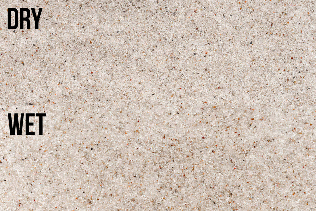 The photo below shows the color difference when dry and wet. Bora Controsand is a lighter tone and the difference is minimal!